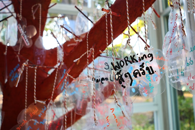 ต้นไม้แห่งความยินดีต้นนี้ เกิดจากพลังสร้างสรรค์ของน้อง ๆ คณะพัฒนาการท่องเที่ยว มหาวิทยาลัยแม่โจ้